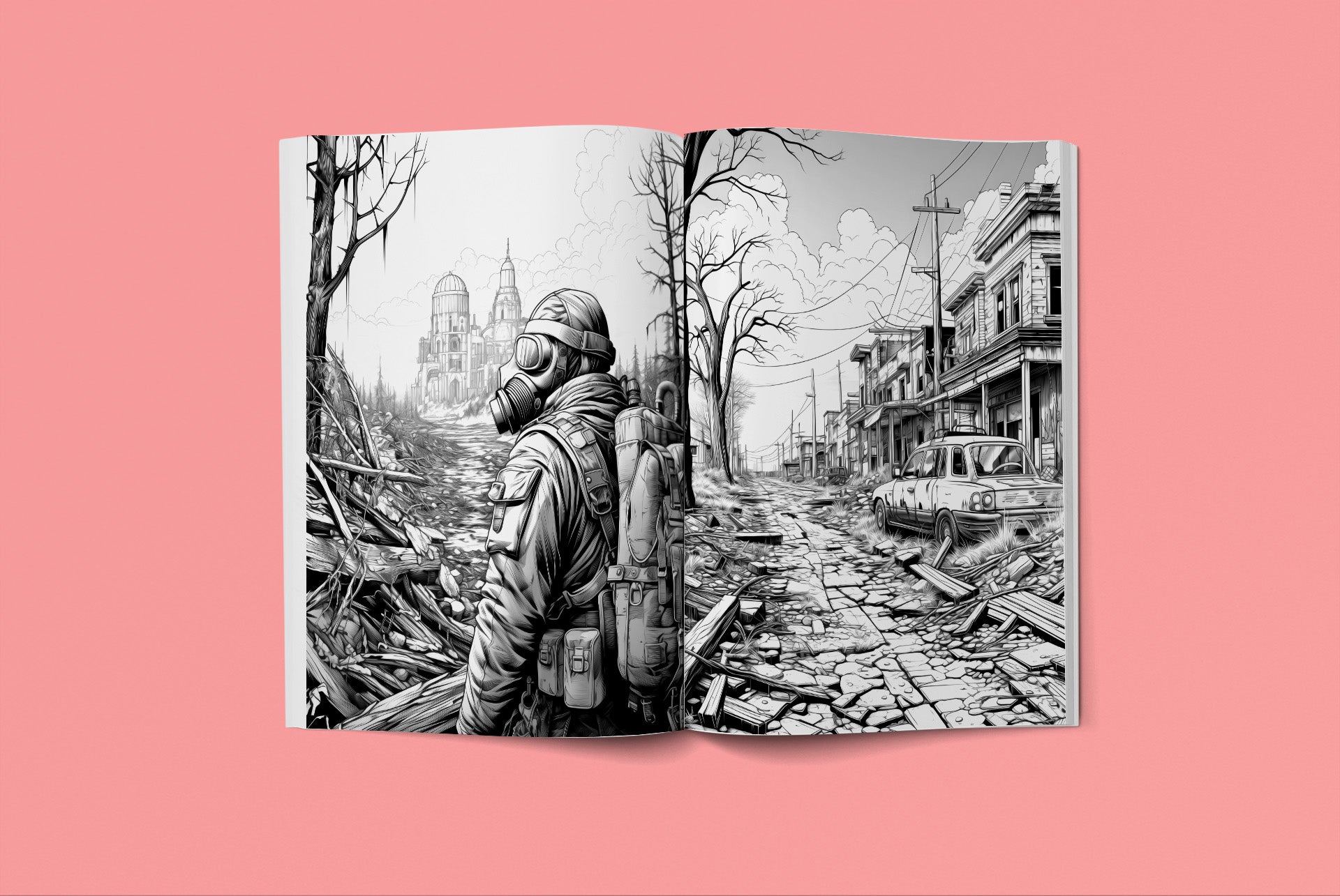 This volume explores harsher environments, deeper decay, and the evolving relationship between humanity and the ruins it left behind. From skeletal city centers to overgrown industrial zones, each page offers a fresh setting waiting for your interpretation.