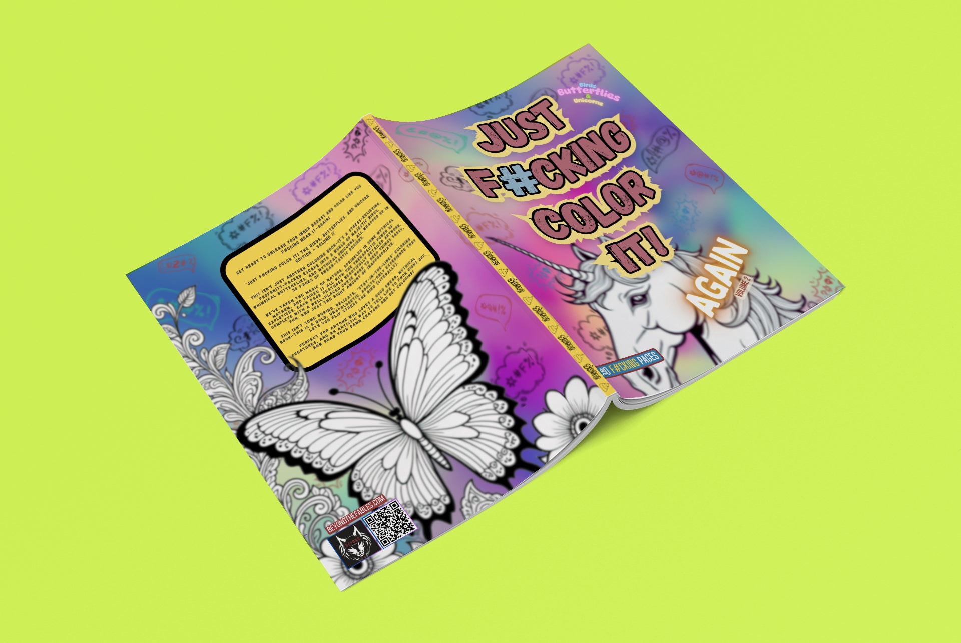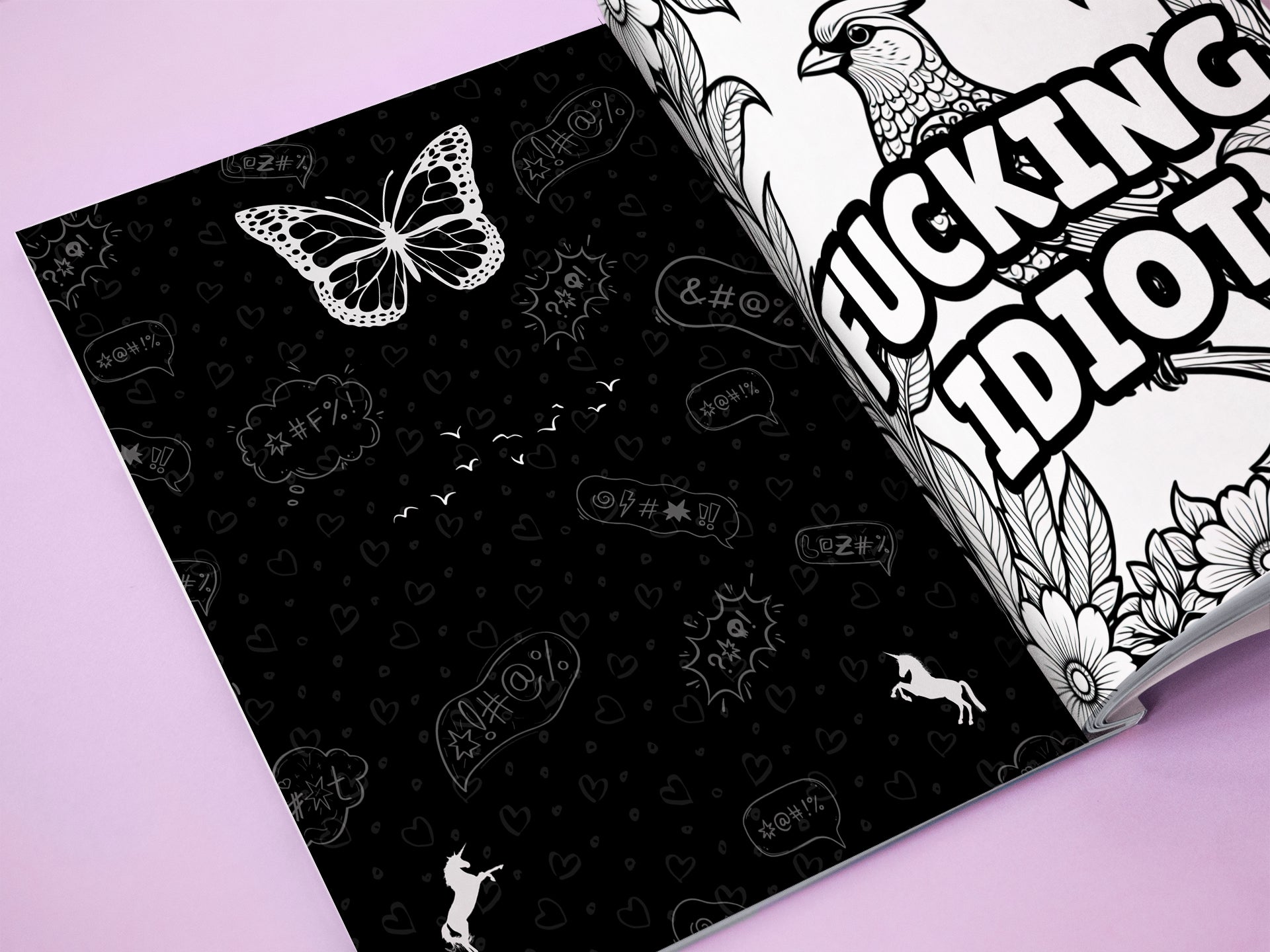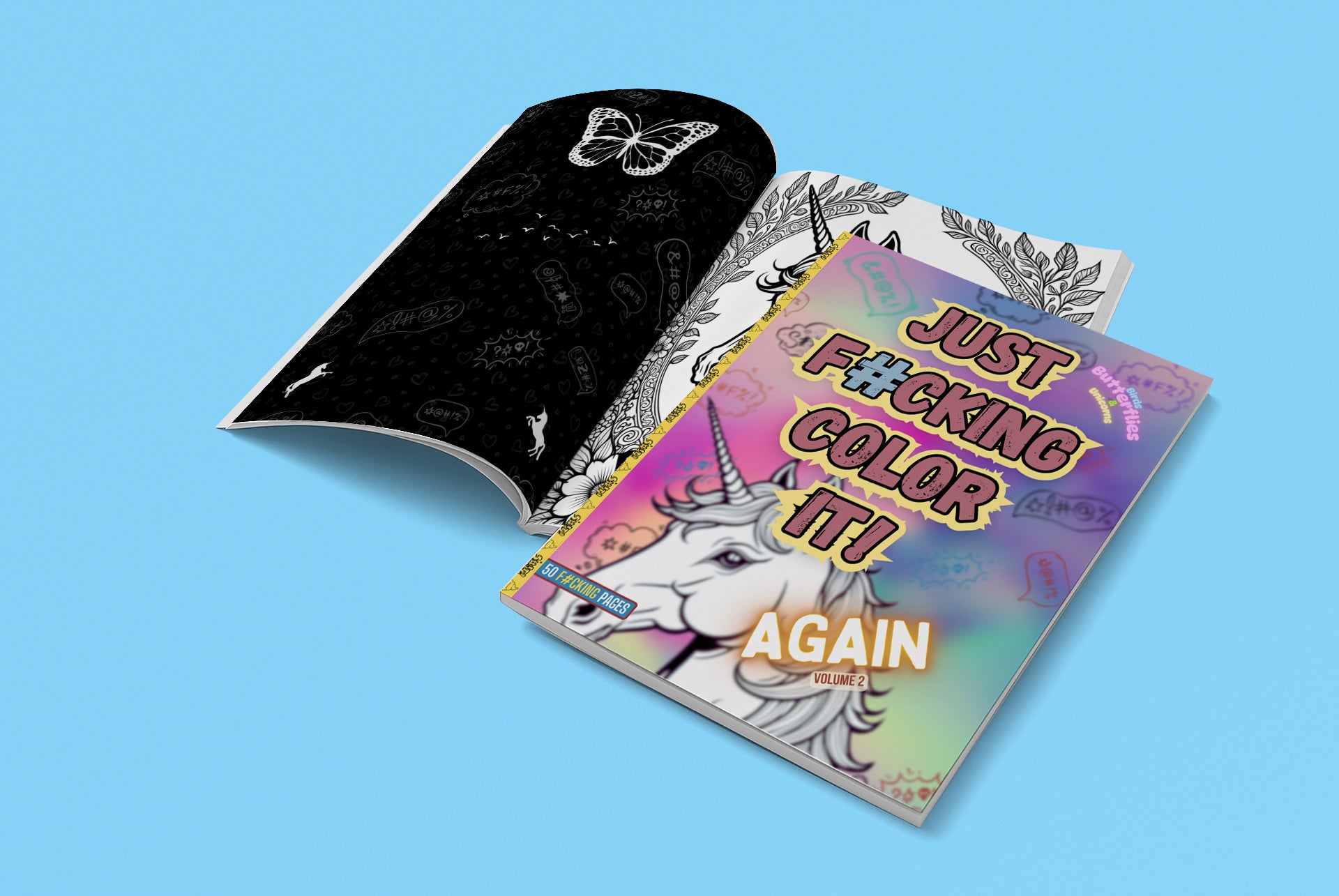 This volume features 50 bold designs combining beautifully illustrated birds, butterflies, and unicorns with perfectly placed profanity. It’s where calm meets chaos, mindfulness meets sarcasm, and stress relief comes with a side of “are you kidding me?”