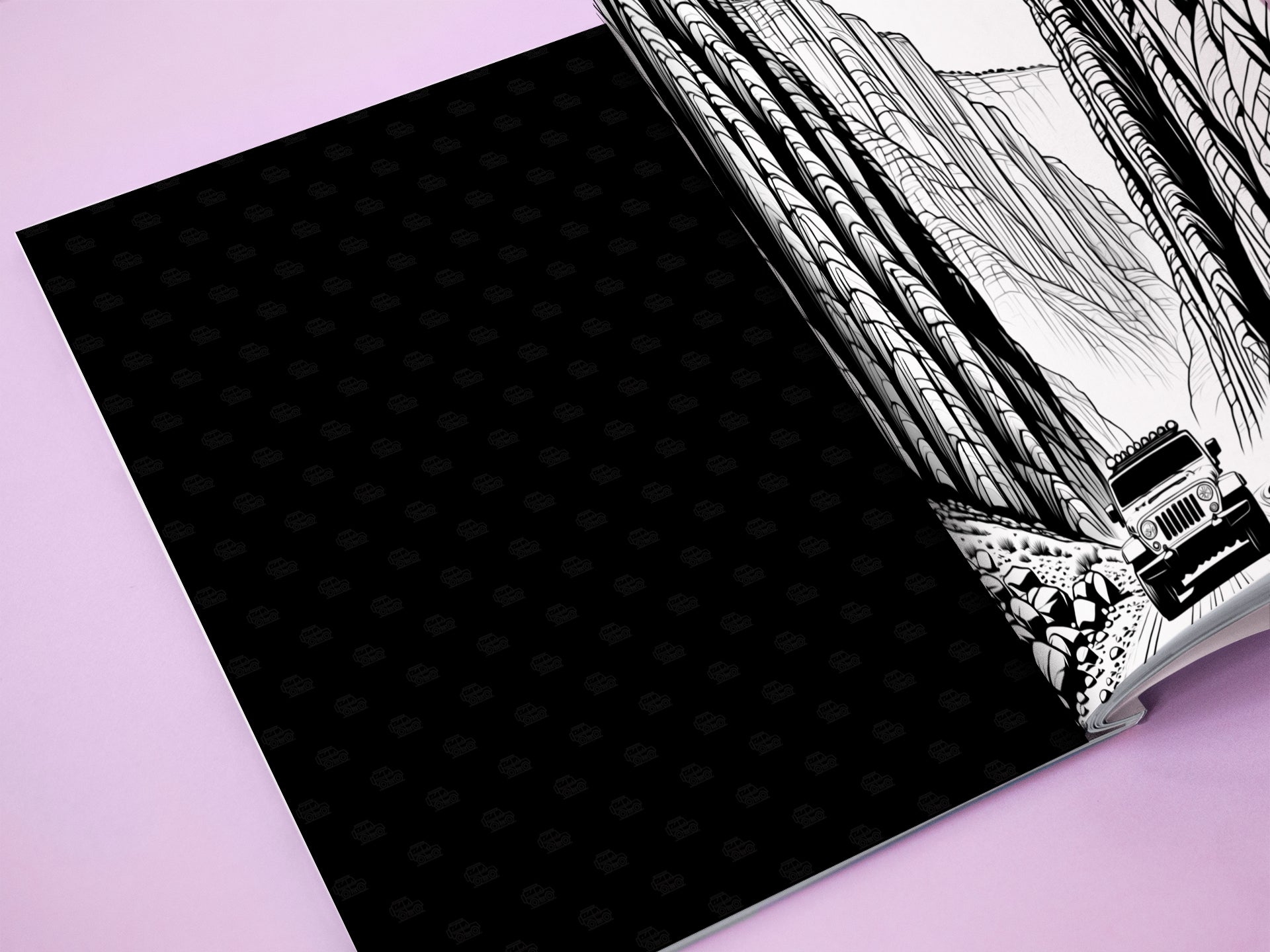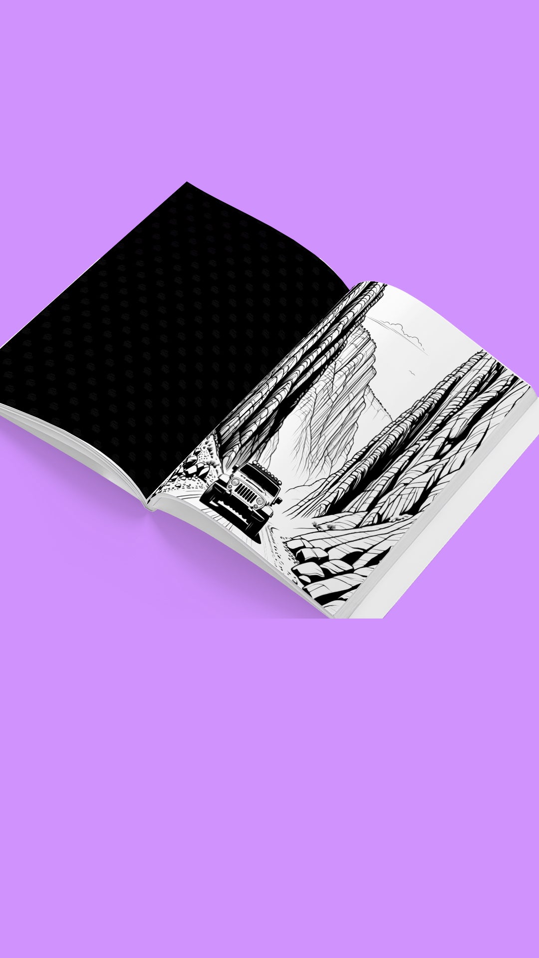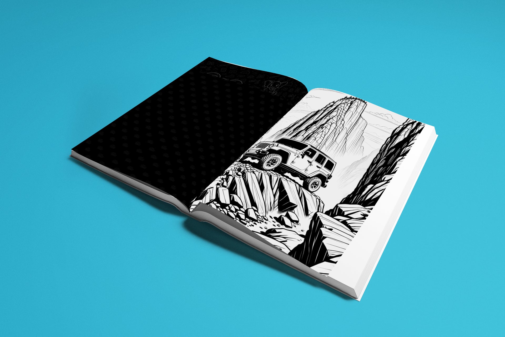 This is not a gentle stroll through the countryside. Each page throws you into the heart of the wilderness—rocky climbs, muddy trails, river crossings, and powerful off-road machines built to conquer it all. Every illustration is designed to capture the thrill, grit, and freedom of life beyond the pavement.